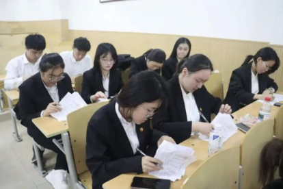 民商法学院第二十一届主席团成员上台进行表态发言。万佳怡承诺会不断强化团队建设,挖掘学院特色优势,推动创新学院活动;高冉表示会始终以服务同学为核心,增强学生会内部沟通协作,重视团队协作与人才培养,增强团队的凝聚力和执行力;安莉馨表明会在继承和发扬学生会优良传统的同时,持续传承奉献精神,不断求真务实、开拓创优,共同书写民商法学院新篇章。