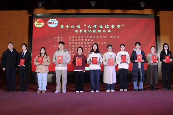 12月5日晚,由西北政法大学校团委主办的“书香涵养青年志,以读促行显担当”经典诵读大赛暨第十四届“大学生读书节”闭幕式于我校长安校区满天星学术报告厅举行。我院周晓阳、王翊萱、陈仪航、岳颜鸽、周家瑛、张璨、谢雨涵、王佩林8位同学带来作品《以青春之我,赴大地之约》。