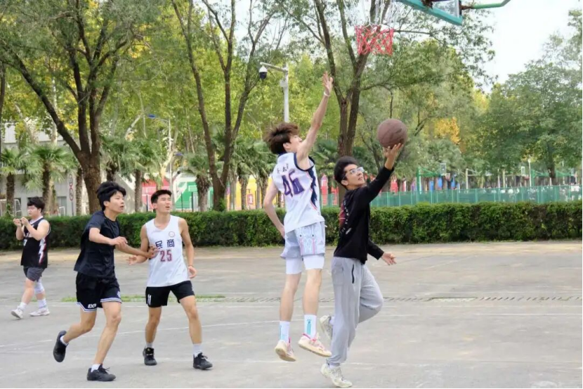 阳光洒满球场,篮球在指尖翻飞作响。队员们热身正酣,拉伸蓄力,浑身燃着斗志。随着裁判一声哨声,两场赛事同步拉开帷幕,球员们迅速进入比赛状态,展开激烈的对抗。