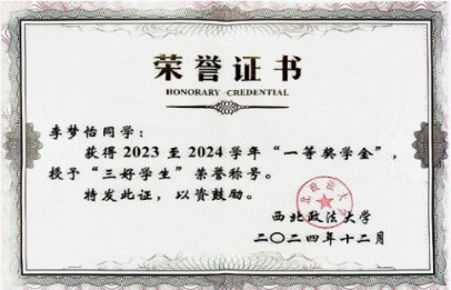 “路虽远,行则将至;事虽难,做则必成。”作为班级学习委员,我始终以身作则,带动班级形成勤学善思的良好氛围;作为《青年法苑》学生编辑,我参与稿件审核与修改,在打磨文字的过程中精进学术素养,提出的选题优化、关键词补充等建议获得编辑部认可。校园文化建设中,我同样积极参与、屡获佳绩。在西北政法大学第八届国家安全知识竞赛中荣获三等奖,以学识守护国家安全;辩论场上,我凭借敏捷的思维与扎实的表达,斩获2023“新生杯”辩论赛冠军暨最佳辩手、2024“思鸣杯”西安高校法律辩论赛冠军暨最佳辩手、陕西省华语辩论公开赛冠军等多项荣誉,以辩促学,锤炼逻辑思辨能力。 平衡学业与实践的同时,我始终保持积极向上的心态,性格活泼开朗、适应能力强,无论是团队协作还是独立攻坚,都能迎难而上、全力以赴,用点滴努力诠释青年担当。