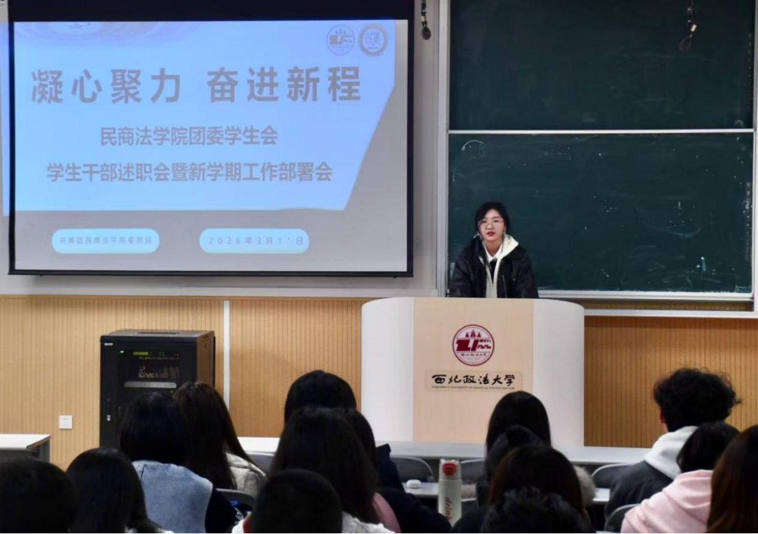 为明确新学期团学工作方向,强化学生干部责任意识,提升学生会工作效能,3月11日下午,民商法学院新学期团学工作部署会暨学生会学生干部述职大会在AJ13教室顺利举行。我院团委书记杨亚男,团总支书记张智超、王影出席会议,学生会全体成员参会,会议由邹轶璇主持。