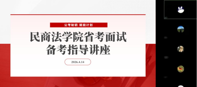 为助力毕业生精准备战省级公务员考试面试,系统掌握面试技巧、提升应试能力,4月14日,民商法学院面向2026届应届毕业生,成功举办“省考面试备考指导”线上专题讲座,为毕业生公考之路保驾护航。