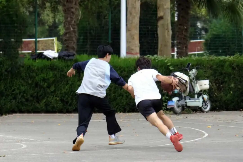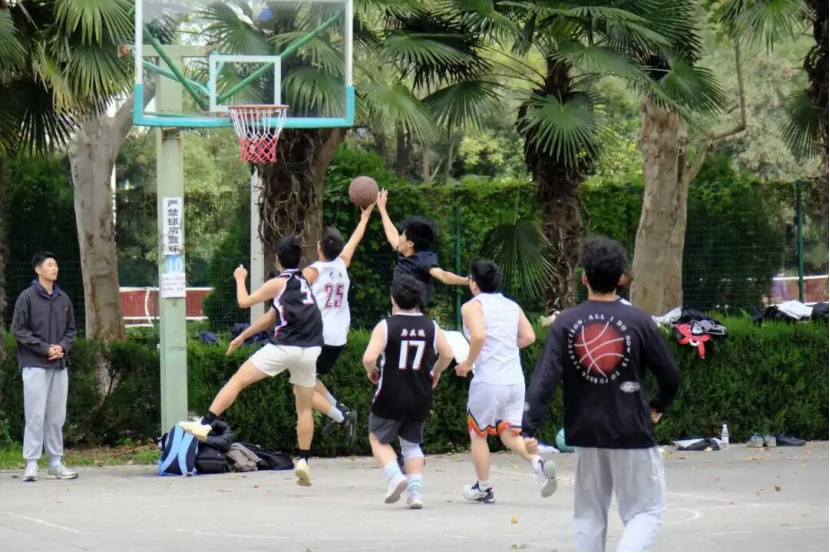 阳光洒满球场,篮球在指尖翻飞作响。队员们热身正酣,拉伸蓄力,浑身燃着斗志。随着裁判一声哨声,两场赛事同步拉开帷幕,球员们迅速进入比赛状态,展开激烈的对抗。
