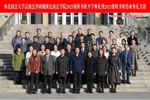 11月30日上午,西北政法大学高级法律研修班(民商法学院)2025级秋季班开学典礼暨2023级秋季班结业典礼于雁塔校区三号教学楼609教室举行。西北政法大学党委副书记张军政,民商法学院院长程淑娟,民商法学院党委副书记、副院长上官亚敏,民商法学院副院长、研究生导师代表凤建军及学员代表出席,典礼由高级法律研修班项目中心主任李祥兵主持。