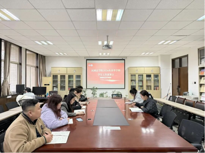 2月28日下午,民商法学院召开2026年春季学期安全稳定暨学生工作会。会议由学院党委副书记丁艳艳主持,学院全体辅导员参加会议。