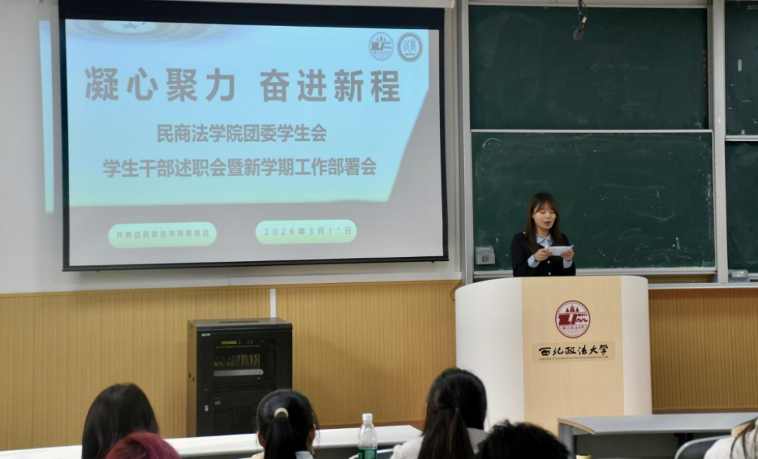 为明确新学期团学工作方向,强化学生干部责任意识,提升学生会工作效能,3月11日下午,民商法学院新学期团学工作部署会暨学生会学生干部述职大会在AJ13教室顺利举行。我院团委书记杨亚男,团总支书记张智超、王影出席会议,学生会全体成员参会,会议由邹轶璇主持。