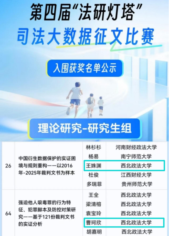 据悉,“法研灯塔”司法大数据征文比赛自2022年创办以来,已连续举办三届,现为国内司法大数据研究领域极具权威性与影响力的赛事。本届大赛紧扣数字法治发展前沿,围绕“公正与效率”主题,聚焦“数字法院”理论研究与实践探索,深化法律大模型应用能力与场景挖掘,设置理论研究和应用探索两大方向,并得到《中外法学》《政法论坛》等40余家法学权威期刊的联合支持。我院本科生、研究生斩获两组别奖项共五项。